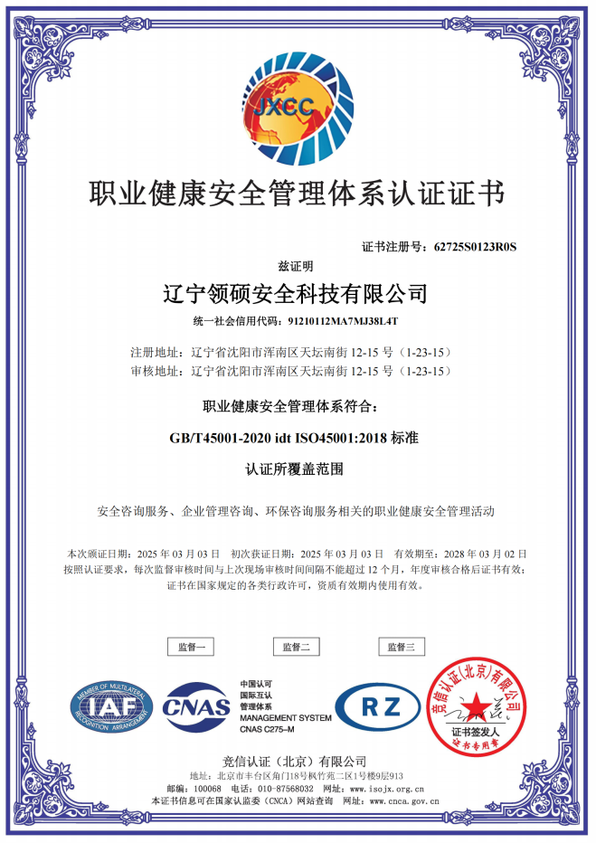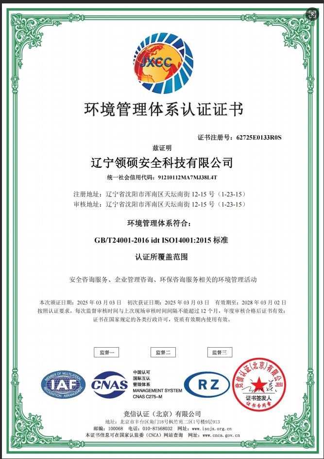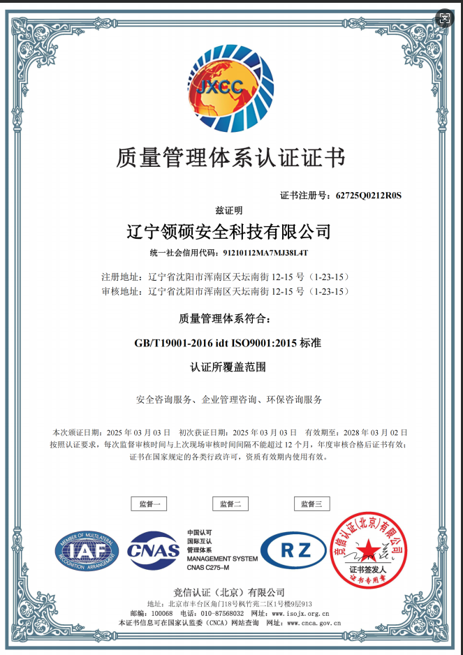 遼寧領碩安全科技有限公司位于遼寧省沈陽市渾南區(qū)天壇南街12-15號,注冊資金300萬。主要經(jīng)營范圍為遼寧省范圍內(nèi)的安全環(huán)保咨詢,生產(chǎn)安全事故應急預案技術服務、企業(yè)雙重預防機制建立、履職能力評估、企業(yè)科研項目安全部分服務等的技術服務機構。現(xiàn)有員工12人,其中包括5名遼寧省級安全生產(chǎn)專家。成立于2022年4月18日,在盤錦市成立至今已經(jīng)為30余家企業(yè)提供了安全環(huán)保技術咨詢。 業(yè)務范圍包括:技術服務、技術開發(fā)、技術咨詢、技術交流、技術轉讓、技術推廣,安全咨詢服務,環(huán)保咨詢服務,標準化服務,企業(yè)管理咨詢,科技中介服務,工程管理服務,特種作業(yè)...查看更多